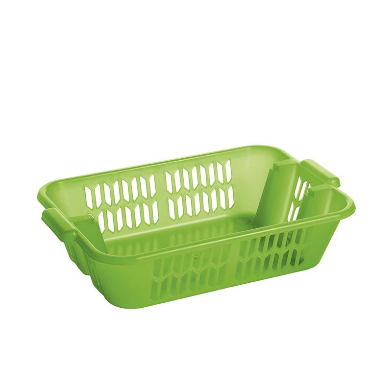 Cestino multiuso in PP verde lime utile in tutti gli ambienti casalinghi, dalla cucina al garage. Il suo design permette un duplice utilizzo. Impilando 2 o più cestini scontrati si può ottenere una torre in cui poter riporre frutta, verdura, cosmetici, giocattoli, cancelleria o anche accessori per il fai da te. Se invece c'è bisogno di riporre i cestini perchè non utilizzati basta sovrapporli tutti nello stesso verso e si impileranno completamente gli uni sugli altri risparmiando spazio. Per un'igiene completa possono essere lavati in lavastoviglie.