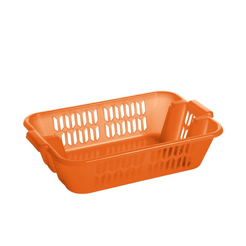 Cestino multiuso in PP arancio utile in tutti gli ambienti casalinghi, dalla cucina al garage. Il suo design permette un duplice utilizzo. Impilando 2 o più cestini scontrati si può ottenere una torre in cui poter riporre frutta, verdura, cosmetici, giocattoli, cancelleria o anche accessori per il fai da te. Se invece c'è bisogno di riporre i cestini perchè non utilizzati basta sovrapporli tutti nello stesso verso e si impileranno completamente gli uni sugli altri risparmiando spazio. Per un'igiene completa possono essere lavati in lavastoviglie.