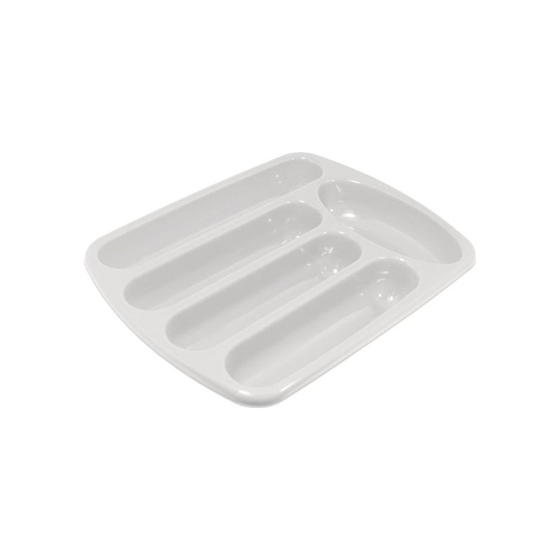 Portaposate da cassetto in PP bianco panna. Dispone di 5 scoparti e nasce per l'organizzazione delle posate nei cassetti della cucina ma può essere utilizzato anche per i trucchi, articoli di cancelleria, utensili da lavoro come cacciaviti… Dal design basico, funzionale e resistente ti aiuterà a tenere in ordine i cassetti di tutta la casa e la pulizia sarà veloce grazie alla superficie lucida.