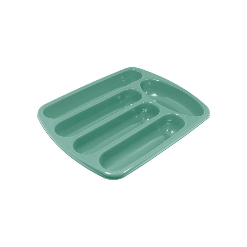 Portaposate da cassetto in PP tiffany. Dispone di 5 scoparti e nasce per l'organizzazione delle posate nei cassetti della cucina ma può essere utilizzato anche per i trucchi, articoli di cancelleria, utensili da lavoro come cacciaviti… Dal design basico, funzionale e resistente ti aiuterà a tenere in ordine i cassetti di tutta la casa e la pulizia sarà veloce grazie alla superficie lucida.