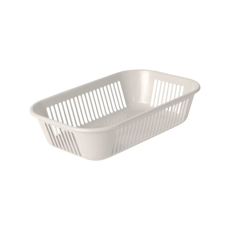 Cestino rettangolare in PP bianco panna. Ideale come portapane ma anche come portafrutta, è pratico e versatile. Realizzato con materiale certificato per il contatto alimentare, può essere lavato in lavastoviglie per una pulizia completa e profonda.