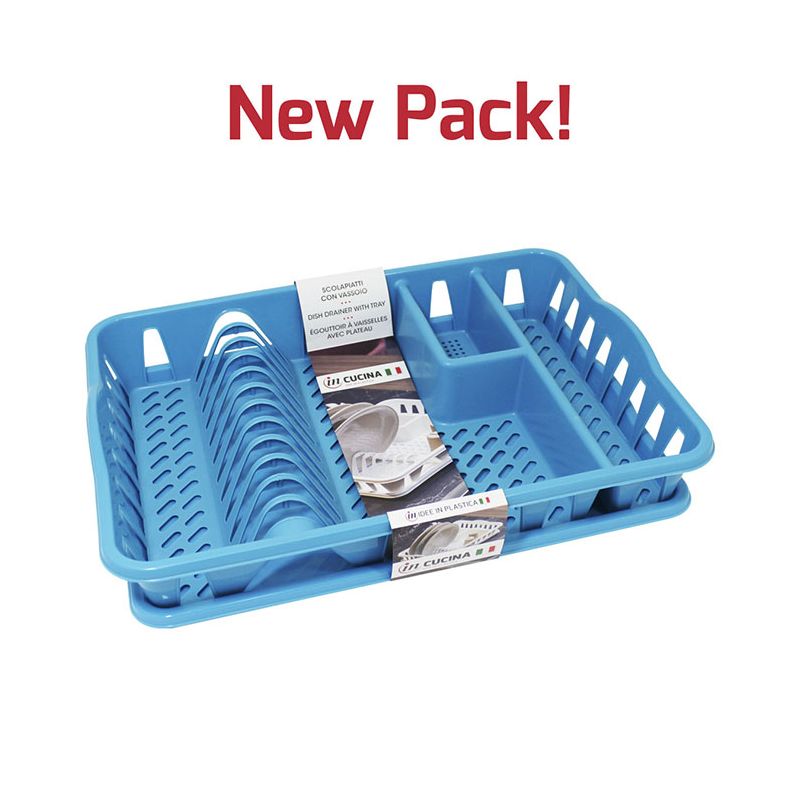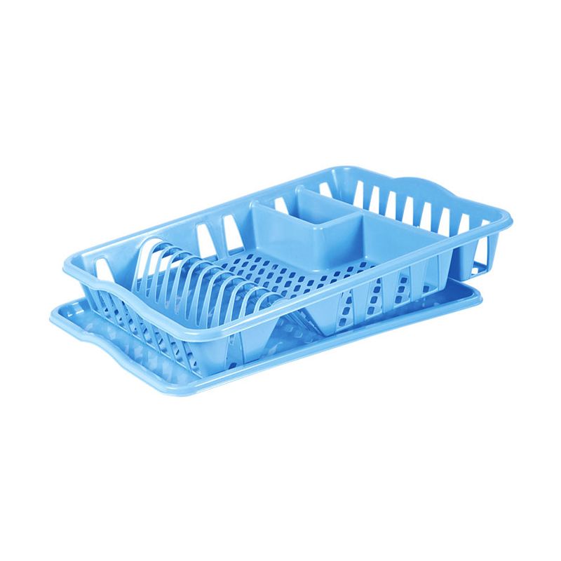 Scolapiatti con vassoio il PP celeste dal design estremamente funzionale e pratico. Grazie ai vari scomparti è molto capiente, può contenere piatti, bicchieri, tazze, ciotole, posate, taglieri, coperchi… L’acqua viene poi raccolta dal vassoio sottostante lasciando il piano della cucina asciutto e pulito. Eventualmente può essere usato come semplice vassoio di portata. Lavabile in lavastoviglie, permette una pulizia accurata e veloce.