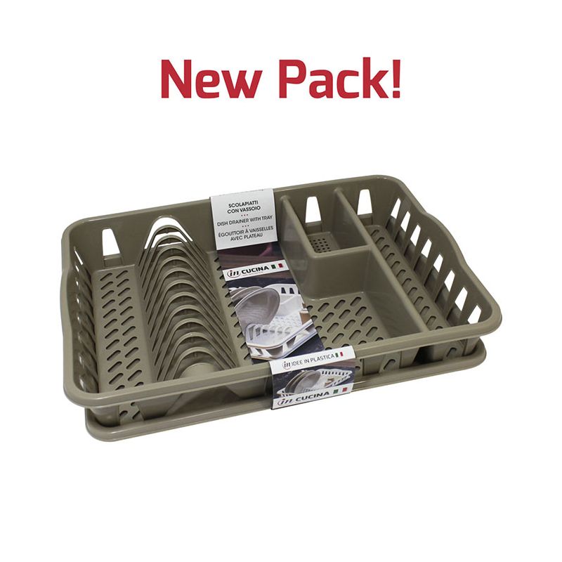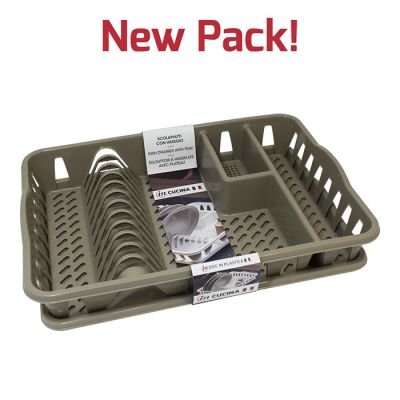 Scolapiatti con vassoio il PP grigio caldo dal design estremamente funzionale e pratico. Grazie ai vari scomparti è molto capiente, può contenere piatti, bicchieri, tazze, ciotole, posate, taglieri, coperchi… L’acqua viene poi raccolta dal vassoio sottostante lasciando il piano della cucina asciutto e pulito. Eventualmente può essere usato come semplice vassoio di portata. Lavabile in lavastoviglie, permette una pulizia accurata e veloce.