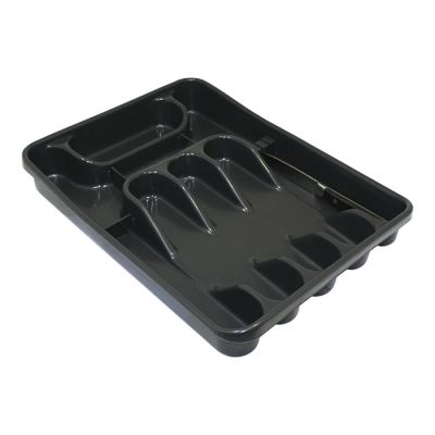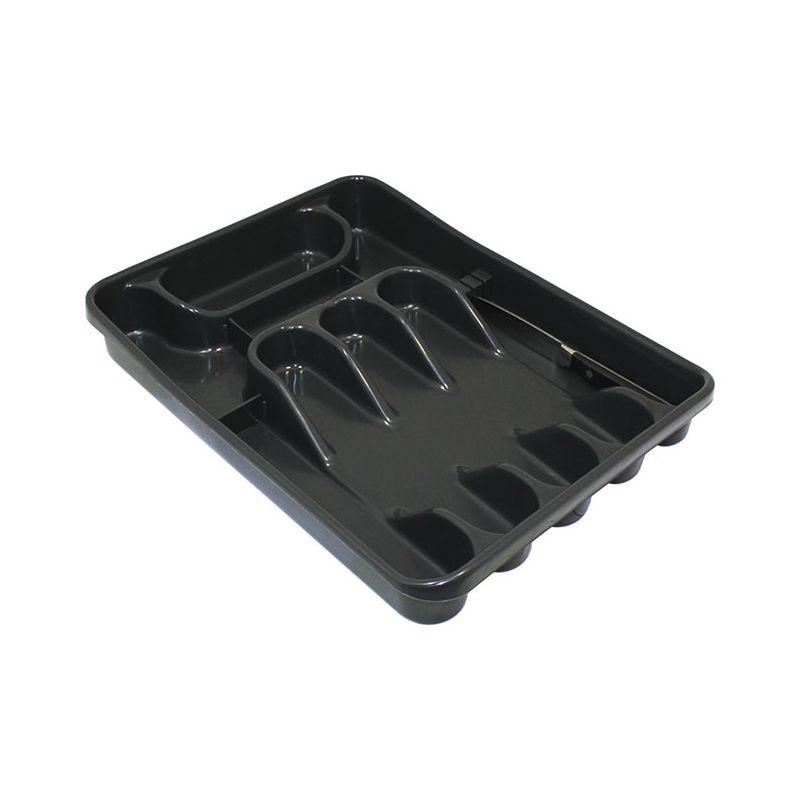 Portaposate da cassetto Maxi in PP antracite. Dispone di 8 scoparti e porta-lama per tenere ordinati e in sicurezza i coltelli. I divisori e il porta-lama sono removibili così da adattarsi a diverse esigenze. Nasce per l'organizzazione delle posate nei cassetti della cucina ma può essere utilizzato anche per i trucchi, articoli di cancelleria, utensili da lavoro come cacciaviti… Semplice, compatto e resistente ti aiuterà a tenere in ordine i cassetti di tutta la casa e la pulizia sarà veloce grazie alla superficie lucida.