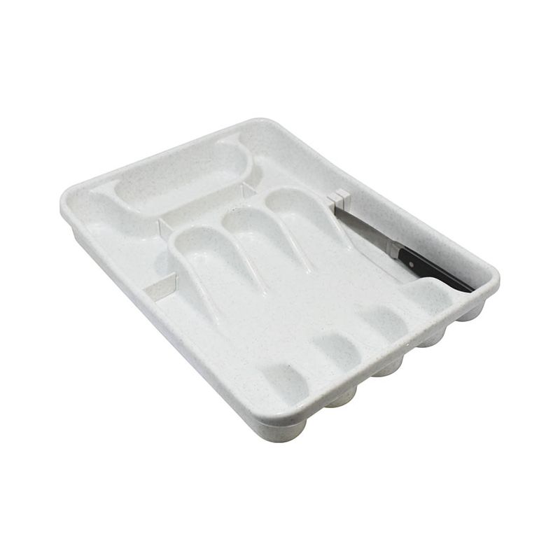 Portaposate da cassetto Maxi in PP bianco marmo. Dispone di 8 scoparti e porta-lama per tenere ordinati e in sicurezza i coltelli. I divisori e il porta-lama sono removibili così da adattarsi a diverse esigenze. Nasce per l'organizzazione delle posate nei cassetti della cucina ma può essere utilizzato anche per i trucchi, articoli di cancelleria, utensili da lavoro come cacciaviti… Semplice, compatto e resistente ti aiuterà a tenere in ordine i cassetti di tutta la casa e la pulizia sarà veloce grazie alla superficie lucida.