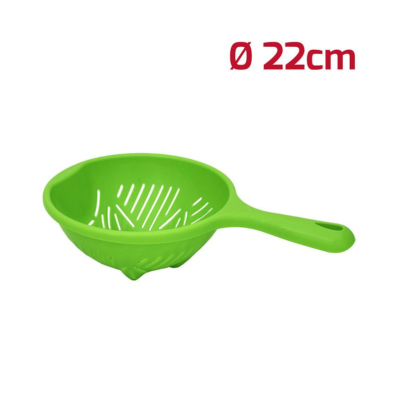 Scolapasta King con manico in PP verde lime dal design moderno e funzionale. Al posto dei classici fori ci sono delle vere e proprie fessure che permettono una scolatura perfetta e facilita la pulizia del prodotto. Sul manico ha anche un foro per poterlo appendere. È robusto e lavabile in lavastoviglie oltre che certificato per il contatto alimentare.
