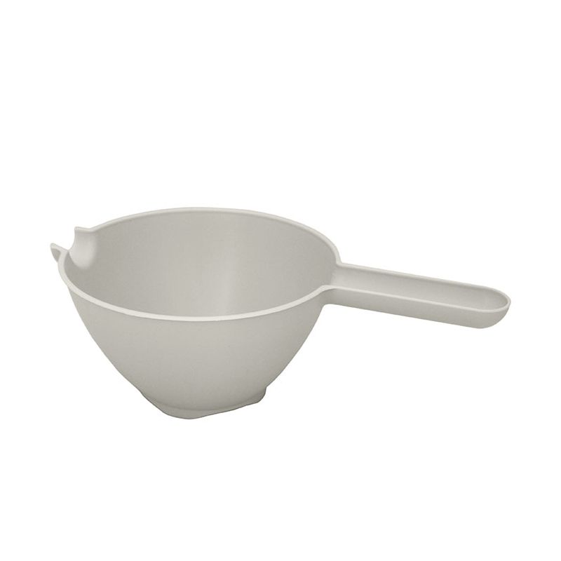 Colariso con manico in PP bianco panna dal design pulito e funzionale. Dotato di beccuccio per versare facilmente il contenuto, è robusto e lavabile in lavastoviglie oltre che certificato per il contatto alimentare.