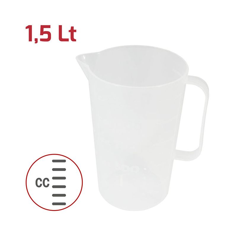Caraffa da tavola graduata con manico e beccuccio in PP trasparente. Sulla superficie sono incise le tacche da 250cc a 1250cc ad intervalli di 250cc ed è quindi perfetta per le preparazioni in cucina, sia di alimenti che di drink. Compatta e funzionale, è certificata per il contatto alimentare e può essere lavata in lavastoviglie.