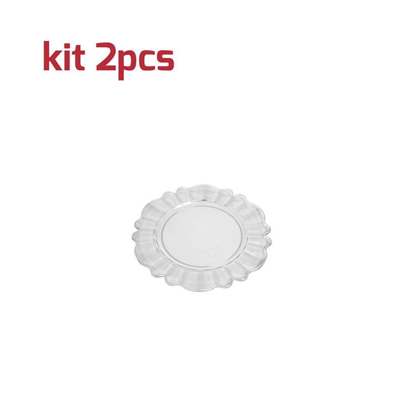 Kit di 2 sottobicchieri Nobles riutilizzabili in PS trasparente. Dal design particolare è perfetto per completare la tavola con un tocco barocco ed elegante grazie all'aspetto cristallino. È certificato per il contatto alimentare e per il lavaggio in lavastoviglie.