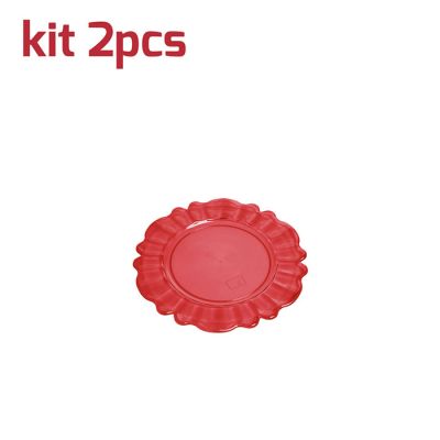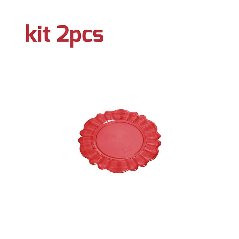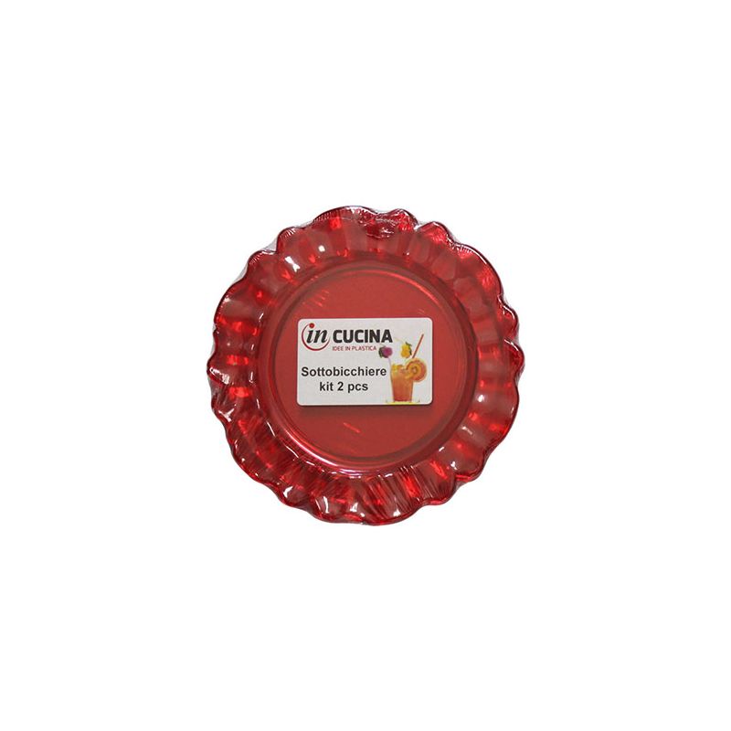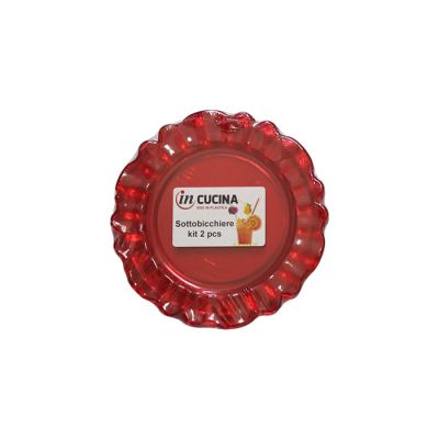 Kit di 2 sottobicchieri Nobles riutilizzabili in PS rosso trasparente. Dal design particolare è perfetto per completare la tavola con un tocco barocco ed elegante grazie all'aspetto cristallino. È certificato per il contatto alimentare e per il lavaggio in lavastoviglie.