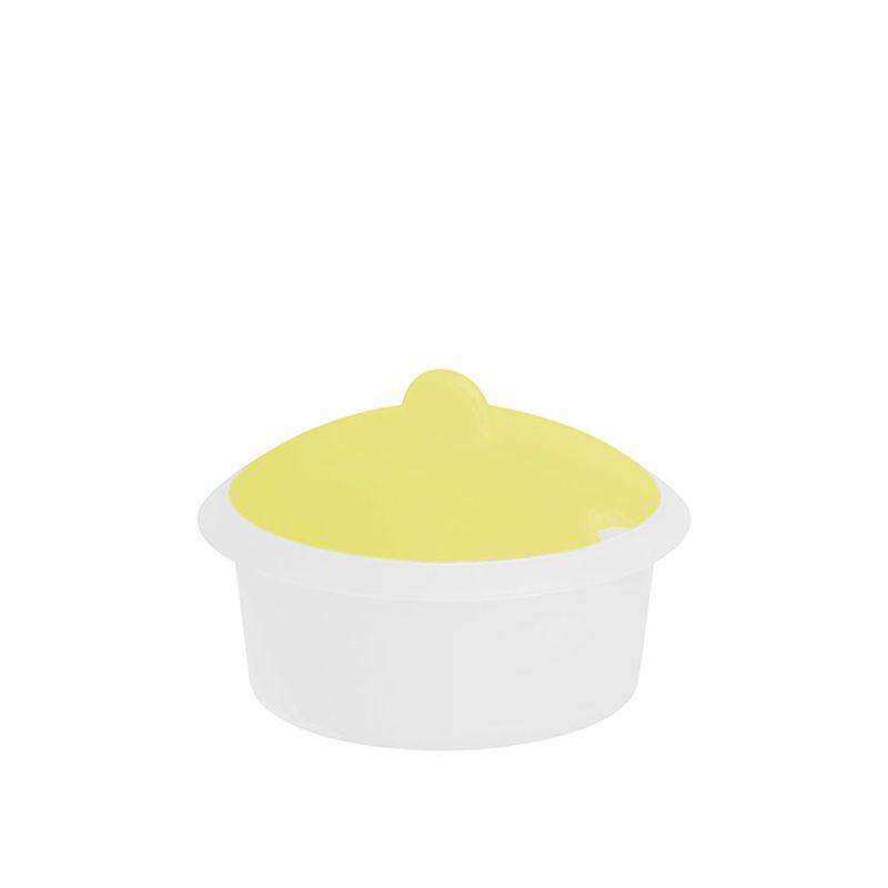 Contenitore trasparente con coperchio giallo pastello in PP ideale per servire in tavola il formaggio grattugiato o lo zucchero. Il coperchio ha l'apposita sagoma per poter mettere il cucchiaino e il design semplice e curato assicura l'efficienza del prodotto. Può essere utilizzato anche per il sale o altre spezie in quando è molto capiente, ma anche stuzzichini come olive o noccioline ad esempio. Certificato per il lavaggio in lavastoviglie.