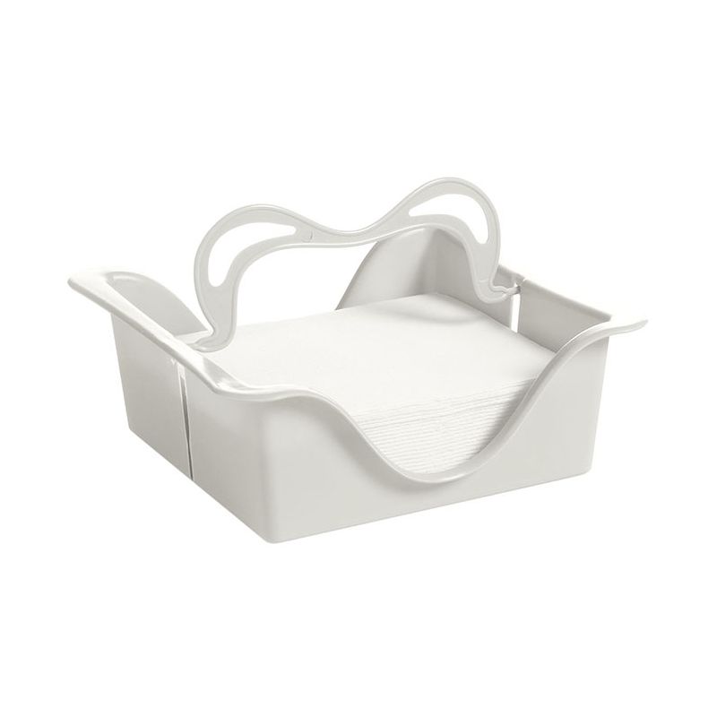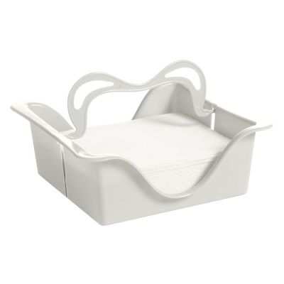Portatovaglioli da tavolo in PP bianco panna. Dotato di manico per spostarlo facilmente che, se abbassato, funge anche da fermo per i tovaglioli soprattutto se utilizzato all'aperto. Pratico e funzione, è indispensabile quando si hanno ospiti per un aperitivo o una festa ed è estremamente facile da pulire in quanto lavabile in lavastoviglie.