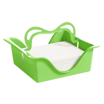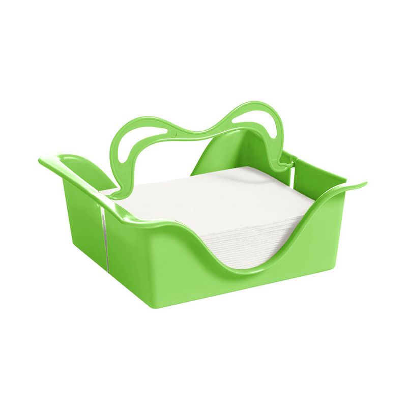 Portatovaglioli da tavolo in PP verde lime. Dotato di manico per spostarlo facilmente che, se abbassato, funge anche da fermo per i tovaglioli soprattutto se utilizzato all'aperto. Pratico e funzione, è indispensabile quando si hanno ospiti per un aperitivo o una festa ed è estremamente facile da pulire in quanto lavabile in lavastoviglie.