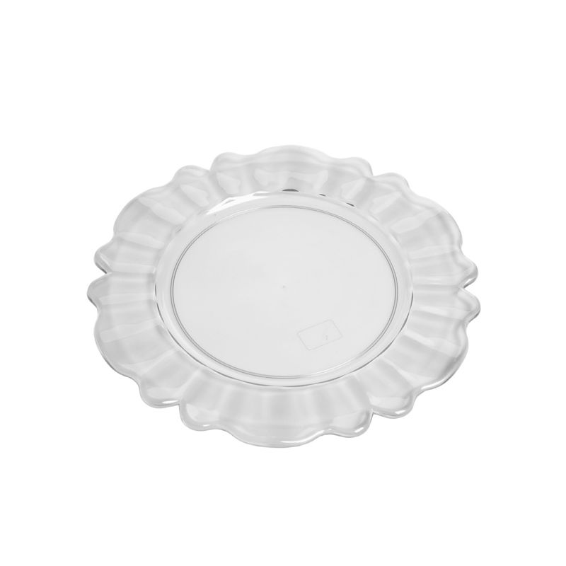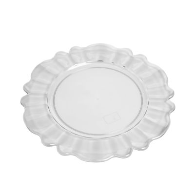 Sottopiatto Nobles in PS trasparente. Dal design particolare è perfetto per completare la tavola con un tocco barocco oppure usato come vassoio per servire dolci o caffè. È certificato per il contatto alimentare e per il lavaggio in lavastoviglie.
