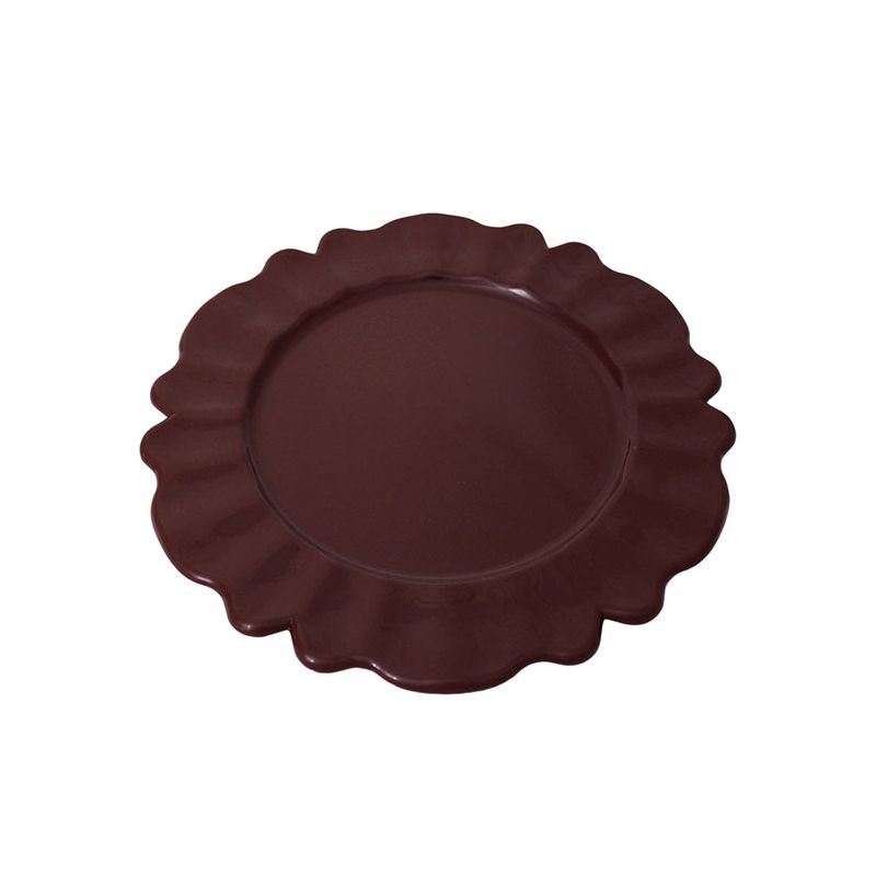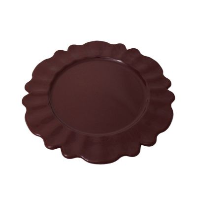 Sottopiatto Nobles in PP vinaccia. Dal design particolare è perfetto per completare la tavola con un tocco barocco oppure usato come vassoio per servire dolci o caffè. È certificato per il contatto alimentare e per il lavaggio in lavastoviglie.
