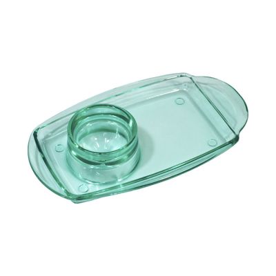 Portauovo in PS salvia trasparente. Elegante accessorio per la tavola lavabile in lavastoviglie. Oltre che per le uova, può essere utilizzato come piccolo vassoio monoporzione per servire formaggi o verdure accompagnati da salse, marmellate o miele per iniziare un pasto. Oppure per servire in modo originale dei salatini durante un aperitivo.