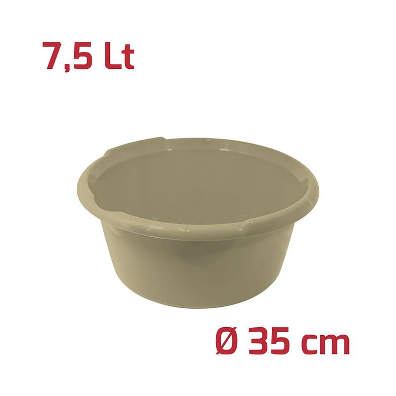 Bacinella Isi rotonda in PP mocha. Dal design innovativo, originale e dotata di maniglie confortevoli è sempre utile sia in ambienti domestici che professionali. Grazie al beccuccio è ancora più facile svuotarla dai liquidi. Può essere usata per la biancheria, per le pulizie, per la raccolta di frutta e verdura… Realizzata in materiale resistente, è semplice e veloce da pulire grazie alla superficie lucida. Dimensioni: Ø 35 x h 15,5 cm / 7,5 Lt
