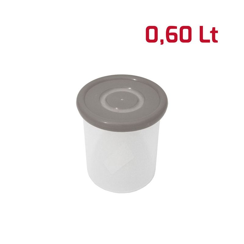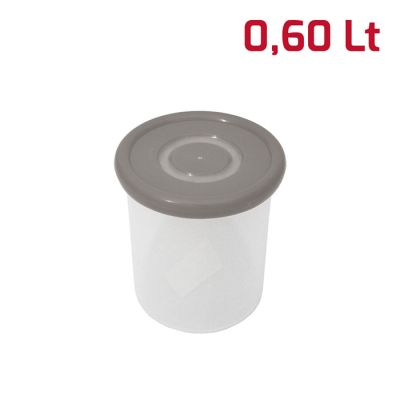 Barattolo Easy tondo con base trasparente e coperchio grigio caldo in PP. Pratico barattolo impilabile adatto sia alla conservazione degli alimenti che per l'organizzazione di dispense, armadi, cassetti o garage. Robusto e lavabile in lavastoviglie permetterà di mantenere ordinato e pulito qualsiasi ambiente della casa.