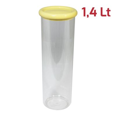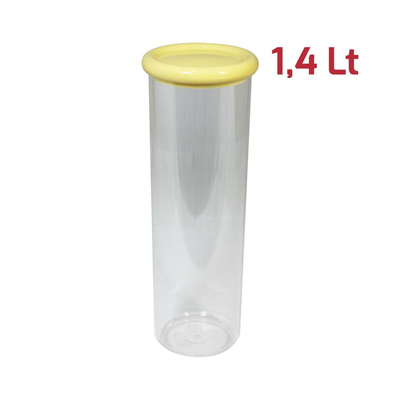 Barattolo Brio tondo con base in PS trasparente e tappo in PP giallo pastello. Pratico barattolo con tappo a pressione dal design rotondeggiante e indispensabile nella dispensa di casa. Grazie alle sue dimensioni è ideale come portaspaghetti ma è adatto alla conservazione di tutti gli alimenti, che siano biscotti, cereali o legumi. È certificato per il contatto alimentare e lavabile in lavastoviglie.