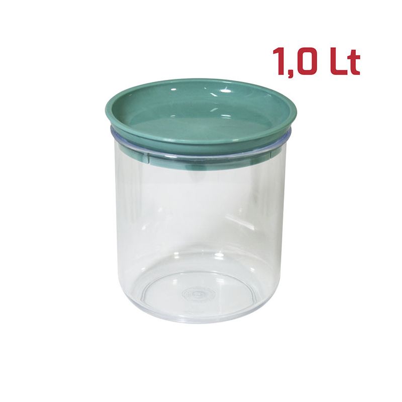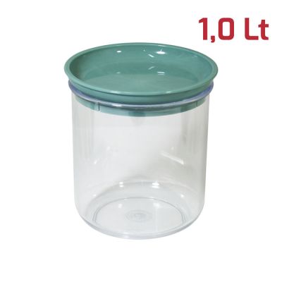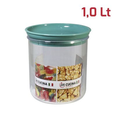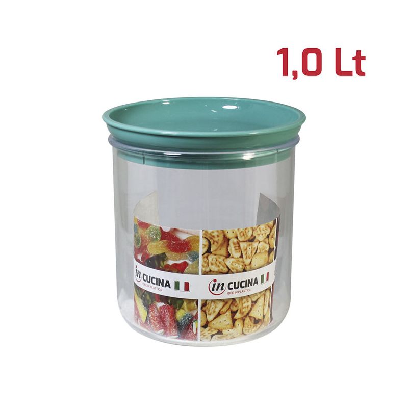 Barattolo Like tondo con base in PS trasparente e tappo in PP tiffany. Pratico barattolo con tappo a pressione dal design moderno e indispensabile nella dispensa di casa. Sono facilmente impilabili e ideali per la conservazione degli alimenti, che siano biscotti, pasta o zucchero. Sono certificati per il contatto alimentare e lavabili in lavastoviglie.