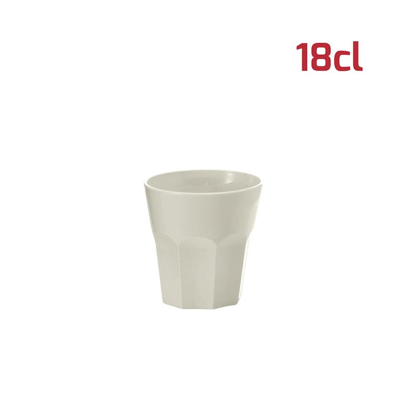 Bicchiere American in PP bianco panna da 18cl al bordo. Il design sfaccettato in stile tumbler rende il bicchiere elegante e adatto ad ogni occasione. Per le sue dimensioni si presta bene anche a gelati, macedonie o stuzzichini oltre ovviamente a tutti i tipi di bevande, sia per adulti che per i più piccoli. È riutilizzabile e lavabile in lavastoviglie.