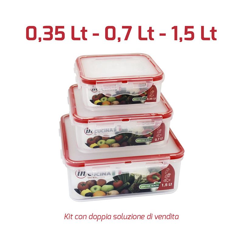 Dimensioni contenitore medio: 15 x 15 x h 6 cm / 0,70 Lt