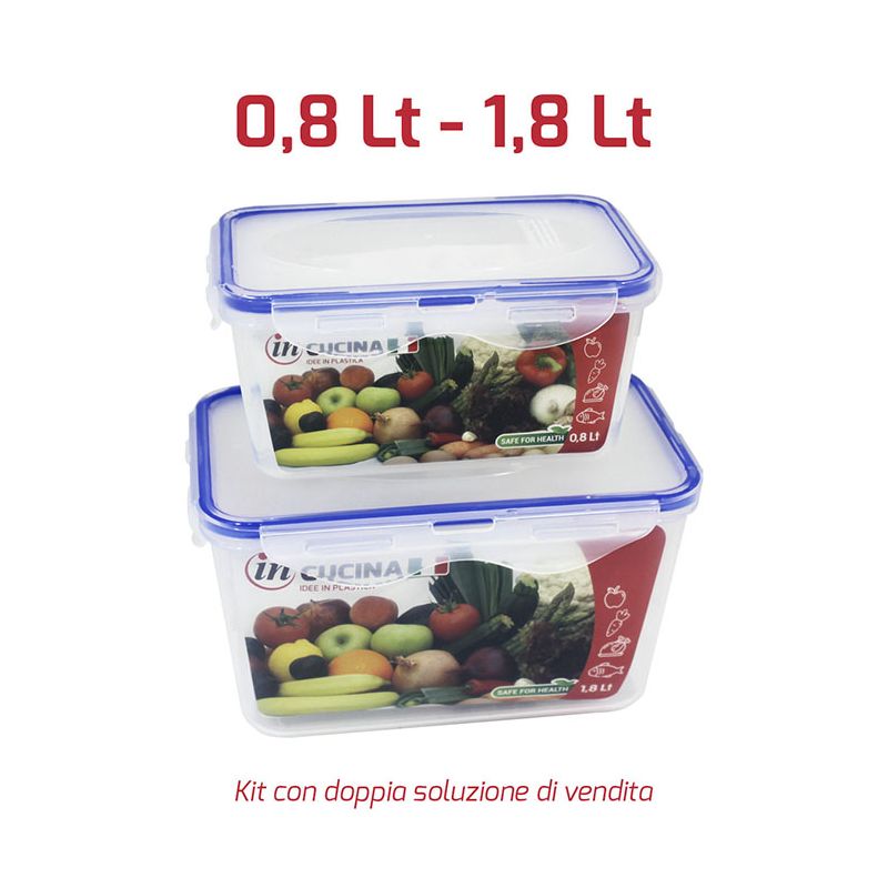 Dimensioni contenitore piccolo: 17 x 11 x h 8,5 cm / 0,80 Lt