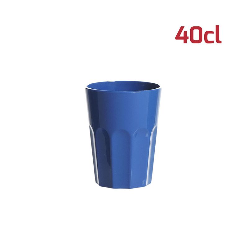 Bicchiere American in PP azzurro da 40cl al bordo. Il design sfaccettato in stile tumbler rende il bicchiere elegante e adatto ad ogni occasione. È particolarmente indicato per i cocktail ma si presta ad ogni tipo di bevanda, che sia alcolica o meno. È riutilizzabile e lavabile in lavastoviglie.