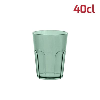 Bicchiere American in PS verde salvia trasparente da 40cl al bordo. Il design sfaccettato in stile tumbler e l'aspetto cristallino rende il bicchiere elegante e adatto ad ogni occasione. È particolarmente indicato per i cocktail ma si presta ad ogni tipo di bevanda, che sia alcolica o meno. È riutilizzabile e lavabile in lavastoviglie.