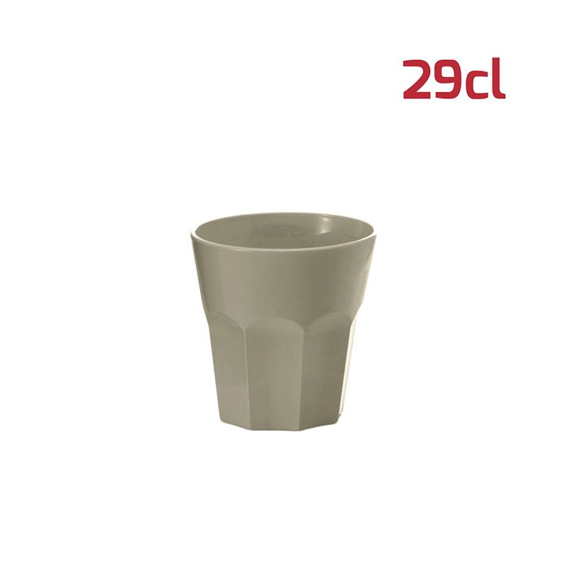 Bicchiere American in PP grigio caldo da 29cl al bordo. Il design sfaccettato in stile tumbler rende il bicchiere elegante e adatto ad ogni occasione. Per le sue dimensioni si presta bene anche a gelati, macedonie o stuzzichini oltre ovviamente a tutti i tipi di bevande. È riutilizzabile e lavabile in lavastoviglie.