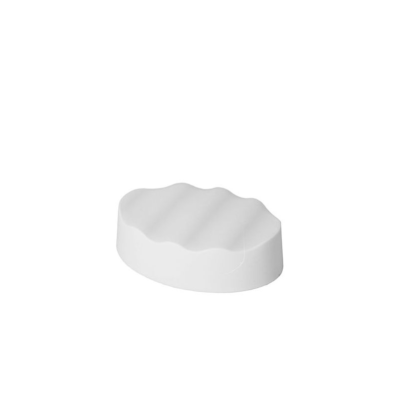 Portasaponetta ovale in PP bianco utilizzabile in 2 modi, sia appoggiato sulla superficie ondulata sia rovesciato.