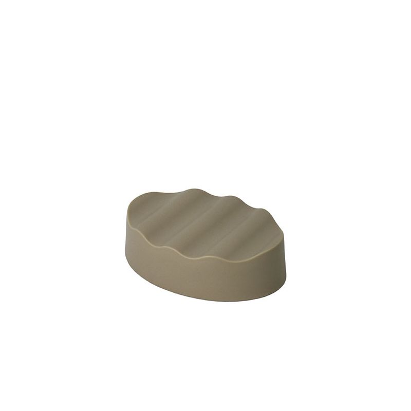 Portasaponetta ovale in PP beige utilizzabile in 2 modi, sia appoggiato sulla superficie ondulata sia rovesciato.