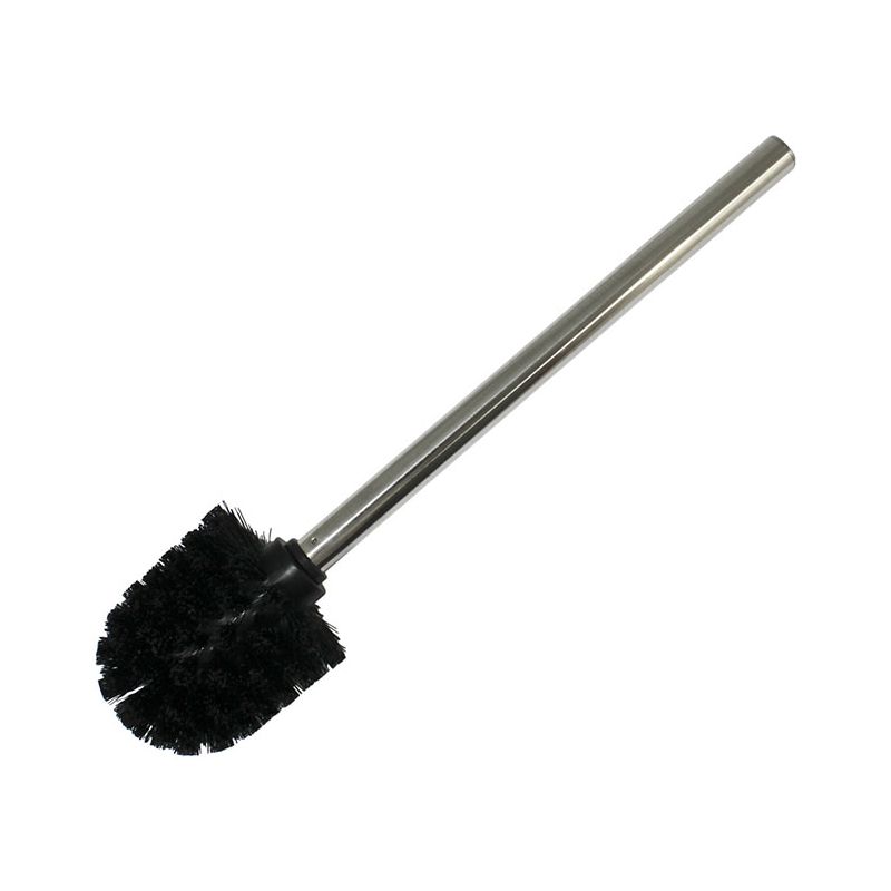 Scopino per il wc con manico in metallo cromato e setole nere in PP. Pratico, funzionale ed elegante, si adatta alla maggior parte dei porta scopini.