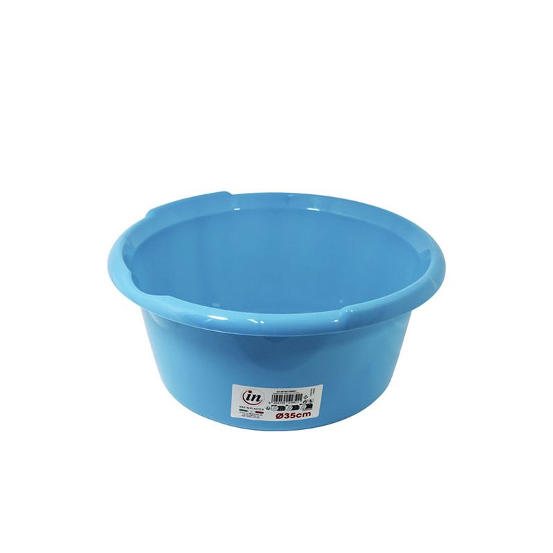 Bacinella Isi rotonda in PP turchese. Dal design innovativo, originale e dotata di maniglie confortevoli è sempre utile sia in ambienti domestici che professionali. Grazie al beccuccio è ancora più facile svuotarla dai liquidi. Può essere usata per la biancheria, per le pulizie, per la raccolta di frutta e verdura… Realizzata in materiale resistente, è semplice e veloce da pulire grazie alla superficie lucida. Dimensioni: Ø 35 x h 15,5 cm / 7,5 Lt