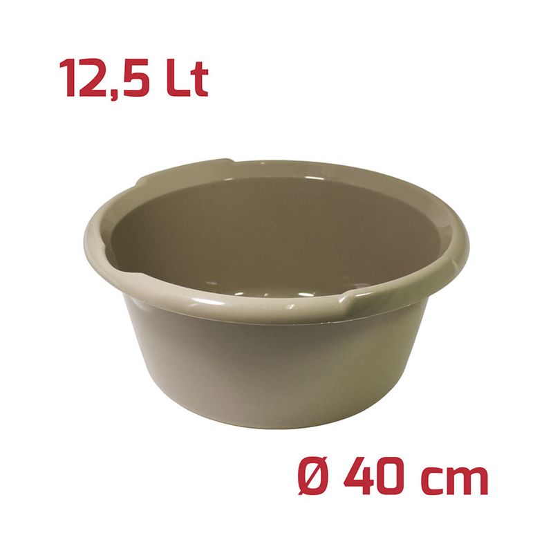 Bacinella Isi rotonda in PP mocha. Dal design innovativo, originale e dotata di maniglie confortevoli è sempre utile sia in ambienti domestici che professionali. Grazie al beccuccio è ancora più facile svuotarla dai liquidi. Può essere usata per la biancheria, per le pulizie, per la raccolta di frutta e verdura… Realizzata in materiale resistente, è semplice e veloce da pulire grazie alla superficie lucida. Dimensioni: Ø 40 x h 18 cm / 12,5 Lt