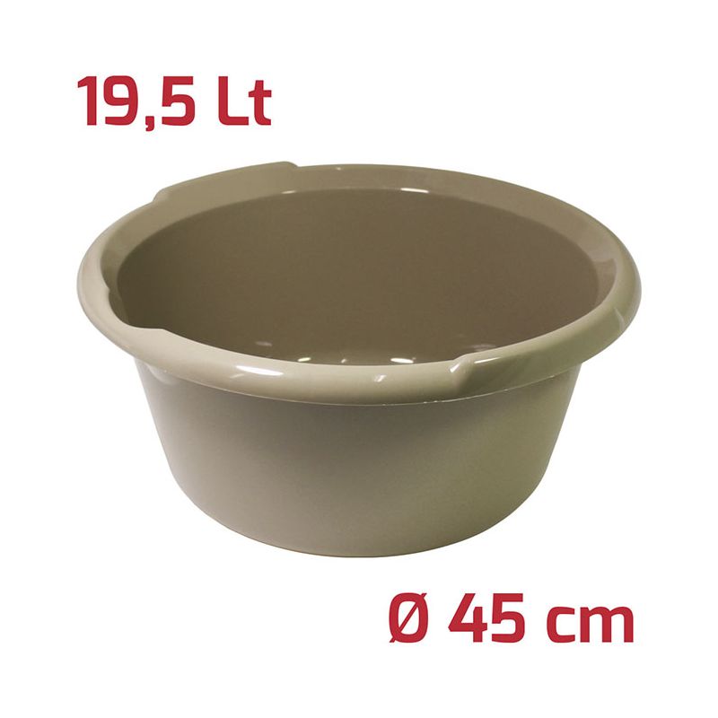 Bacinella Isi rotonda in PP mocha. Dal design innovativo, originale e dotata di maniglie confortevoli è sempre utile sia in ambienti domestici che professionali. Grazie al beccuccio è ancora più facile svuotarla dai liquidi. Può essere usata per la biancheria, per le pulizie, per la raccolta di frutta e verdura… Realizzata in materiale resistente, è semplice e veloce da pulire grazie alla superficie lucida. Dimensioni: Ø 45 x h 20,5 cm / 19,5 Lt