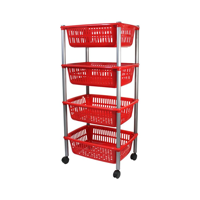 Carrello con 4 ripiani in PP rosso. Pratico mobiletto con ruote che permette di sfruttare al massimo gli spazi: può essere utile in cucina, in garage, in soffitta o in cantina. Utile per organizzare cibi e bevande, dalla frutta alle bottiglie di vino, ma anche utensili o giocattoli. La superficie lucida assicura una pulizia veloce e il montaggio è semplice grazie al kit e le istruzioni incluse nella confezione (non necessita di viti o altri accessori).