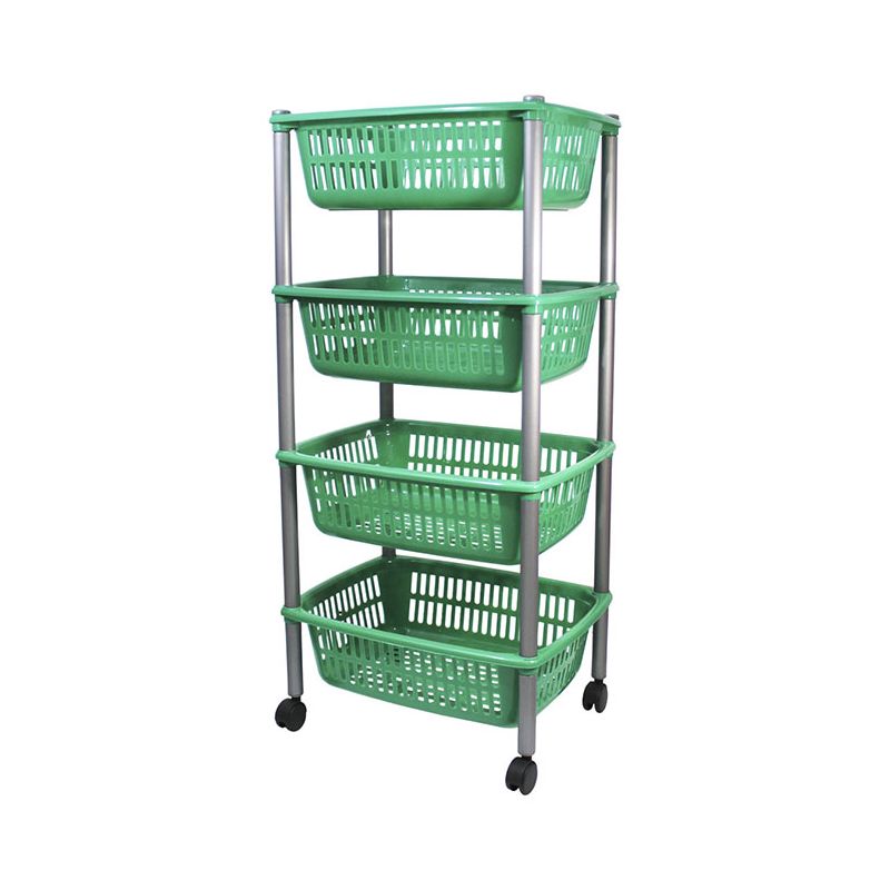 Carrello con 4 ripiani in PP verde scuro. Pratico mobiletto con ruote che permette di sfruttare al massimo gli spazi: può essere utile in cucina, in garage, in soffitta o in cantina. Utile per organizzare cibi e bevande, dalla frutta alle bottiglie di vino, ma anche utensili o giocattoli. La superficie lucida assicura una pulizia veloce e il montaggio è semplice grazie al kit e le istruzioni incluse nella confezione (non necessita di viti o altri accessori).
