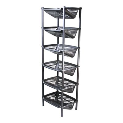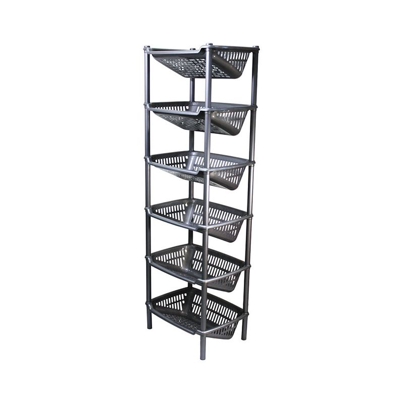 Cantinetta con 6 ripiani obliqui in PP silver. Pratico mobiletto che permette di sfruttare al massimo gli spazi: può essere utile in cucina, in garage, in soffitta o in cantina. Utile per organizzare cibi e bevande, dalla frutta alle bottiglie di vino, ma anche scarpe, utensili o giocattoli. La superficie lucida assicura una pulizia veloce e il montaggio è semplice grazie al kit e le istruzioni incluse nella confezione (non necessita di viti o altri accessori).