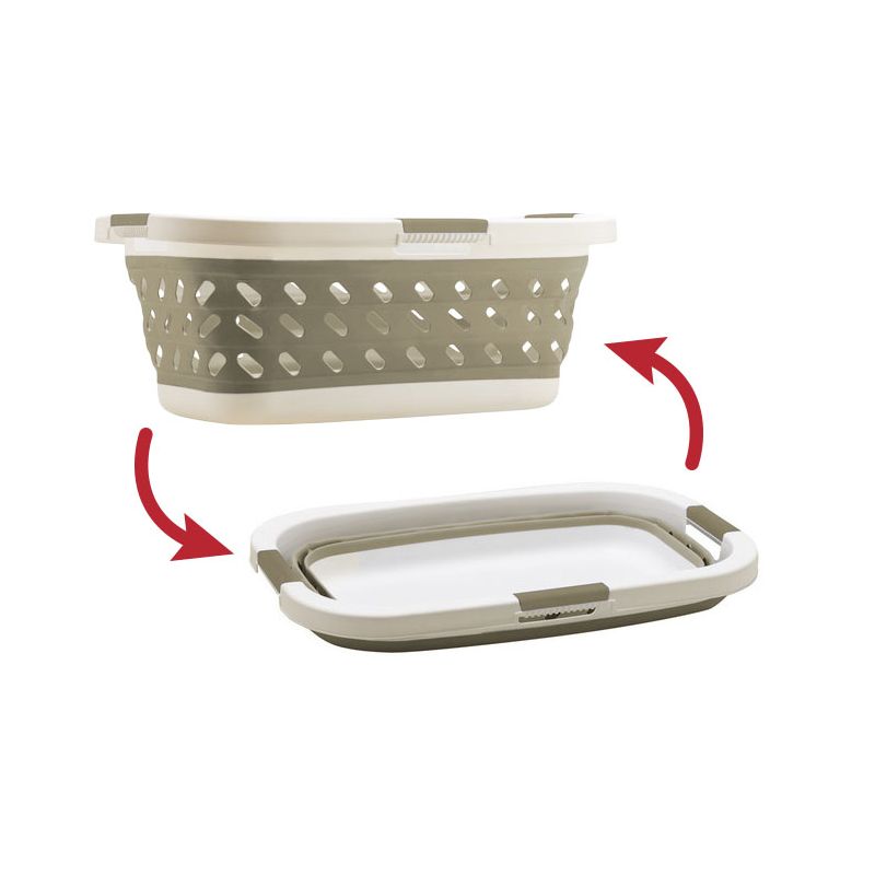 Cesta collassabile salvaspazio in PP bianco e dettagli tortora. Ideale per la biancheria, ma può essere utilizzata per qualsiasi altro scopo, la cesta ha ben 3 maniglie ergonomiche per ottimizzare la presa e facilitare al massimo l'utilizzo. Dal design moderno e pratico, una volta chiusa occupa solamente 9 cm e può essere riposta anche negli spazi più ristretti mantenendo l'ambiente ordinato. Realizzata con materiali di alta qualità, è facile e veloce da pulire oltre ad essere resistente e durevole.