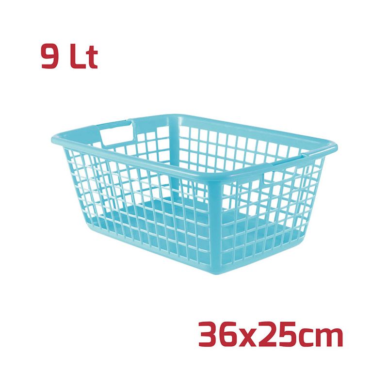 Cestino traforato in PP turchese. Le maniglie rendono il prodotto pratico e adatto a svariati utilizzi sia in ambito domestico che professionale. Robusto e realizzato con materiali di alta qualità permette di organizzare ogni spazio: dalla cucina alla lavanderia, dalla dispensa al garage. Può essere utilizzato anche come portafrutta o per ordinare giocattoli dei bambini.