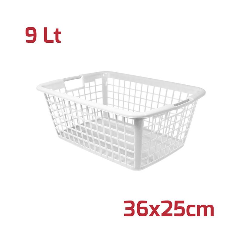 Cestino traforato in PP bianco. Le maniglie rendono il prodotto pratico e adatto a svariati utilizzi sia in ambito domestico che professionale. Robusto e realizzato con materiali di alta qualità permette di organizzare ogni spazio: dalla cucina alla lavanderia, dalla dispensa al garage. Può essere utilizzato anche come portafrutta o per ordinare giocattoli dei bambini.