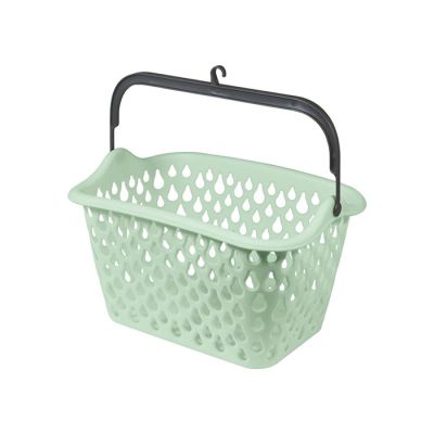 Cestino portamollette in PP verde salvia e manico grigio. Dal design originale a tema goccioline è perfetto per contenere le mollette del bucato. Grazie al gancio presente sul manico mobile è possibile appenderlo sul filo dello stendino così da averlo sempre a portata di mano. Il cestino è robusto e versatile ed infatti può essere utilizzato anche per organizzare giocattoli, colori o per raccogliere frutta e verdura di piccole dimensioni.