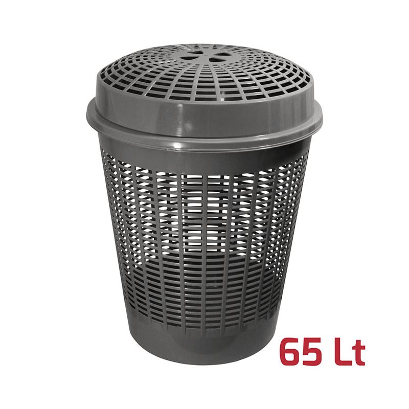 Cesta traforata Europa con coperchio in PP grigio talpa. Il coperchio è dotato di pratici fori per sollevarlo. Può essere utilizzata in bagno o in lavanderia come cesta per il bucato ma anche nelle camere dei bimbi per organizzare i giocattoli o addirittura per cura dell'orto o del giardino, ad esempio per raccogliere le foglie secche. I materiali certificati assicurano robustezza e durabilità e la superficie lucida permette una pulizia veloce e accurata.