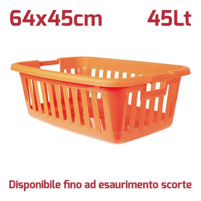 Cesta portabiancheria rettangolare Athena in PP arancio brillante. Ideale per il bucato, la cesta è dotata di maniglie che ne agevolano l'uso e le pareti forate la rendono leggera ma molto robusta. Può essere usata comodamente anche per la cura del giardino o dell'orto grazie a materiali di alta qualità e resistenza. La superficie esterna satinata dà al prodotto un'aspetto elegante e moderno mentre all'interno la superficie è lucida così da semplificare la pulizia del prodotto.