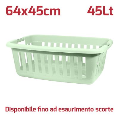 Cesta portabiancheria rettangolare Athena in PP verde salvia. Ideale per il bucato, la cesta è dotata di maniglie che ne agevolano l'uso e le pareti forate la rendono leggera ma molto robusta. Può essere usata comodamente anche per la cura del giardino o dell'orto grazie a materiali di alta qualità e resistenza. La superficie esterna satinata dà al prodotto un'aspetto elegante e moderno mentre all'interno la superficie è lucida così da semplificare la pulizia del prodotto.