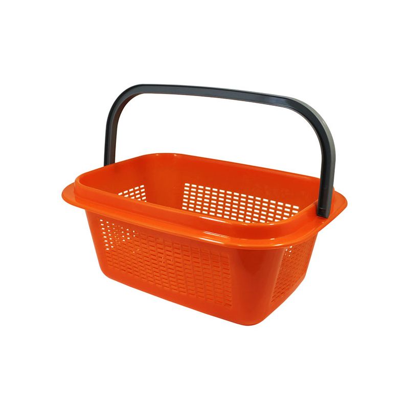 Cesta multiuso in PP arancio brillante e manico grigio. Le pareti forate la rendono leggera ma anche robusta grazie ai materiali di alta qualità. Si presta a svariati utilizzi che sia in casa, in giardino, in garage o in lavanderia. Se non necessario il manico si abbassa poggiandosi sull'apposito bordo e la superficie liscia permette una pulizia profonda e veloce del prodotto.