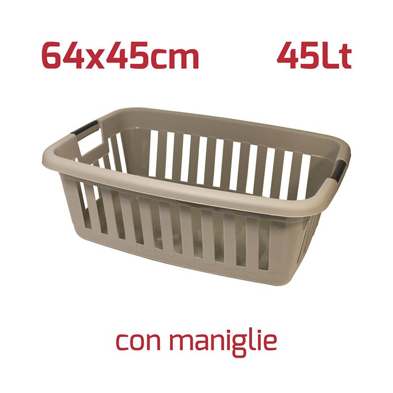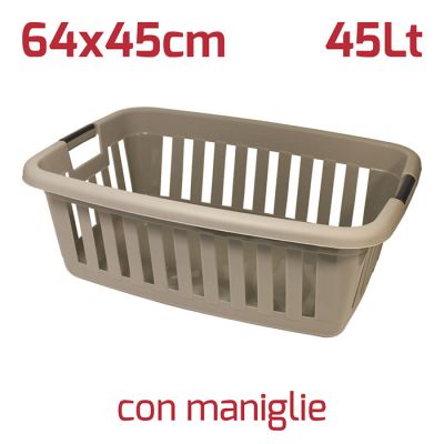 Cesta portabiancheria rettangolare Athena in PP mocha. Ideale per il bucato, la cesta è dotata di maniglie che ne agevolano l'uso e le pareti forate la rendono leggera ma molto robusta. Può essere usata comodamente anche per la cura del giardino o dell'orto grazie a materiali di alta qualità e resistenza. La superficie esterna satinata dà al prodotto un'aspetto elegante e moderno mentre all'interno la superficie è lucida così da semplificare la pulizia del prodotto.