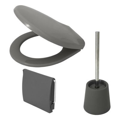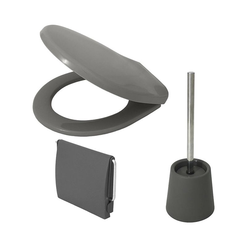 Kit di 3 accessori per il bagno in PP nero composto da un sedile wc, un portarotolo e un portascopino. /