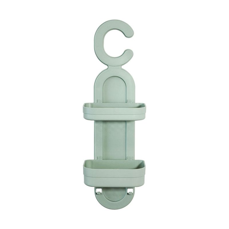 Mensola a 2 ripiani per doccia in PP verde salvia. Il gancio di cui è dotata permette di agganciare la mensola al saliscendi della doccia (fino ad un diametro di 5,5cm). Ogni ripiano ha il fondo forato per permettere all'acqua di defluire mentre in basso sono presenti 2 piccoli ganci in cui poter appendere spugne o altri accessori. Pratica e comoda sia per sfruttare al massimo lo spazio all'interno della doccia sia per chi vuole tenere a portata di mano ed organizzati shampoo e saponi senza però praticare fori nelle pareti della doccia. Il montaggio è semplicissimo e veloce grazie al metodo ad incastro che assicura i ripiani rendendoli stabili ma facili da smontare per la pulizia.